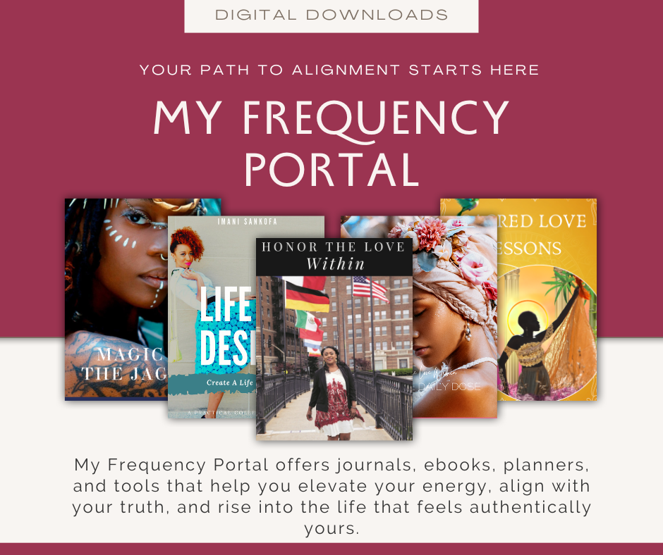 Peace and blessings. I’m Imani Sankofa, Frequency Guide, Soul Doula, and Creator of the Spiritual Frequency Hopping™ method. My mission is to guide women through frequency portals of clarity, sovereignty, and soul-led transformation. I also host the Sacred Love Lessons podcast, where we remember who we truly are.